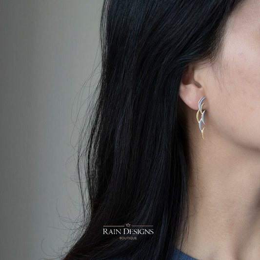 Gold and Silver Folding Fan Earrings