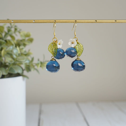 Blueberry Dangle Earrings| Handmade Resin Blueberry Cluster Fruit Earrings