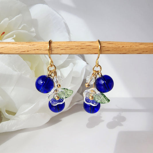 Luxury Blueberry Fruit Cluster Earrings | Handmade Resin Art Blueberry Dangle Earrings