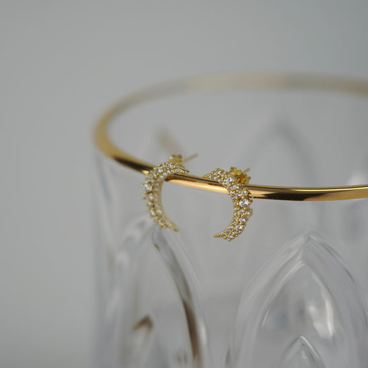 Moon Crescent 925S Silver Earrings | Shine Crescent Stud Earrings