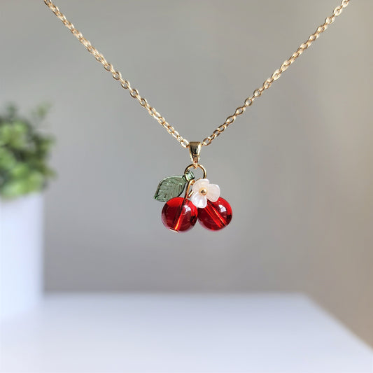 Custom Cherry Necklace | Design Your Own 14K Gold Plated Cherry Fruit Necklace