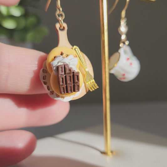 Chocolate Pancake Dangle Earrings | Sweet Dessert Food Fun Earrings