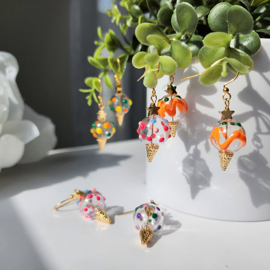 Espolvorea pendientes de helado, pendientes colgantes de helado de vidrio, pendientes de comida, regalo para ella