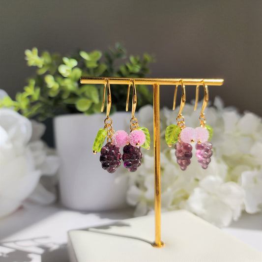 Pendientes de uvas dulces de caramelo, pendientes colgantes de uva, pendientes de frutas, regalo para ella