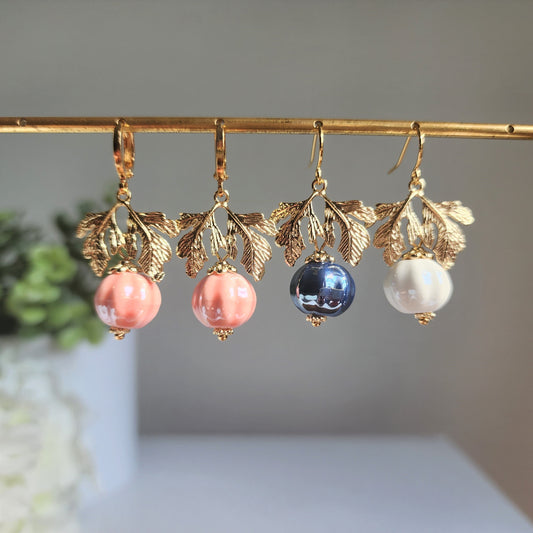 Pendientes de calabaza, pendientes de calabaza con brillo de hoja de oro y cerámica, pendientes colgantes de otoño únicos, acción de gracias de Halloween de otoño, pendientes de comida