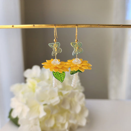 Pendientes colgantes de manzanilla, pendientes de flor de crisantemo y mariposa, regalo para ella