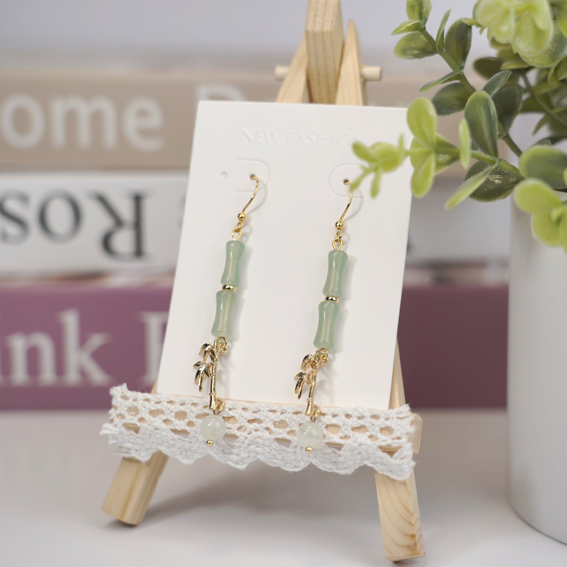 Bamboo Dangling Earrings | Natural Jade Bamboo Leaf Fun Earrings