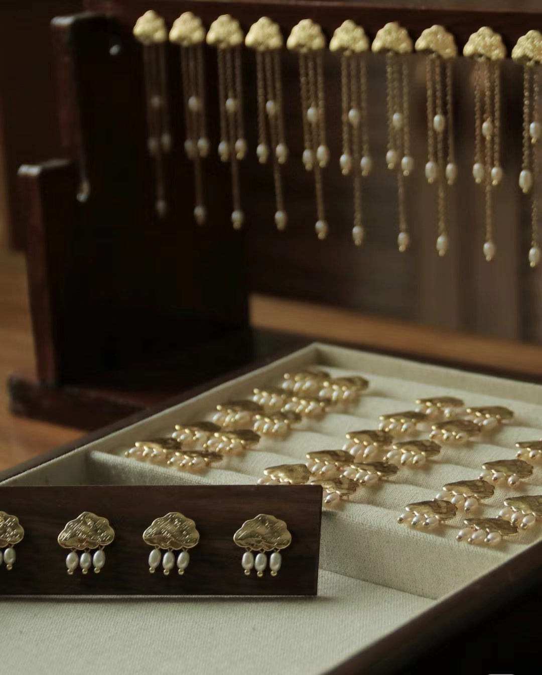 Cloudy rain pearl earrings are made with natural pearl rain drops and 14K gold plated 925 sterling silver earring studs which are good for delicate skin.