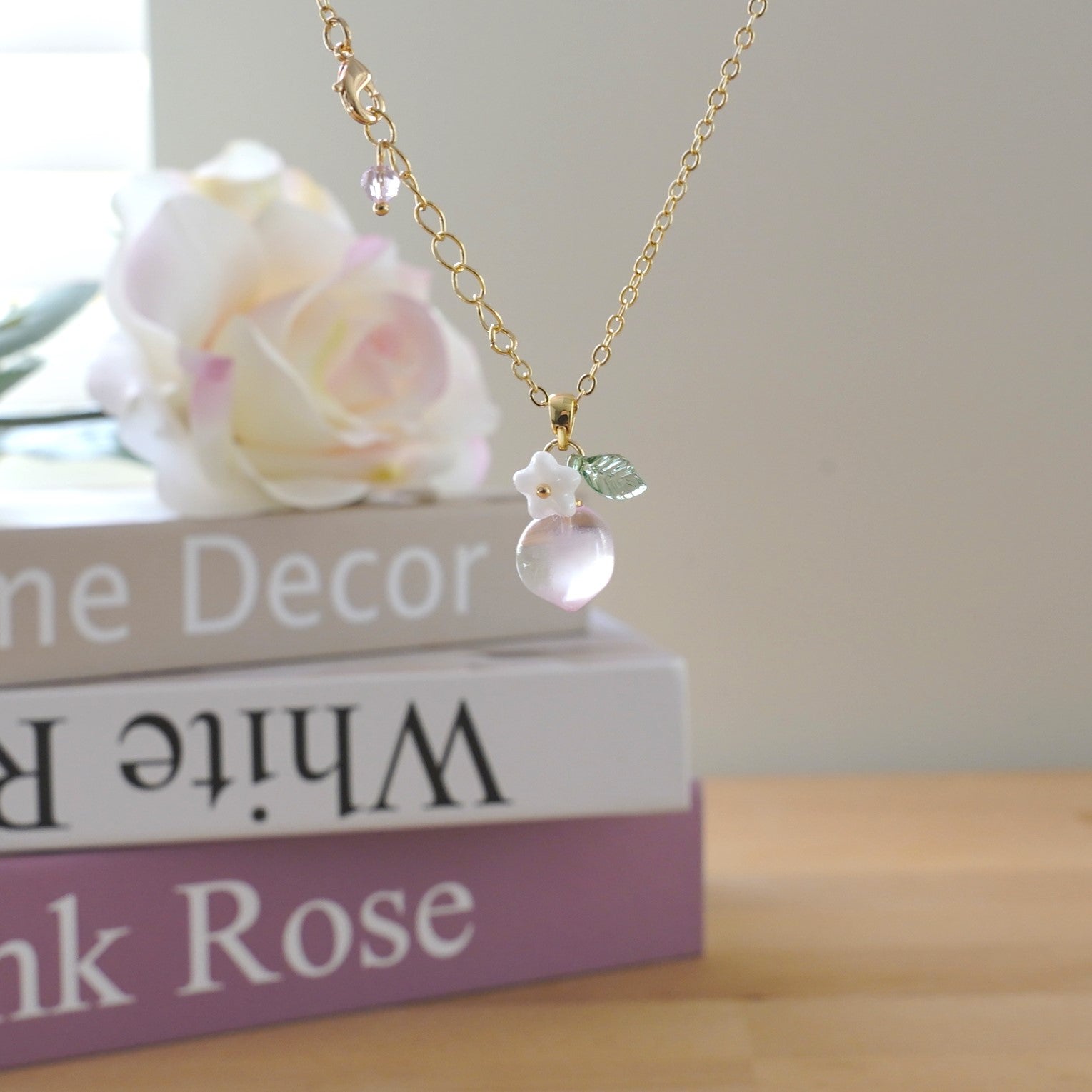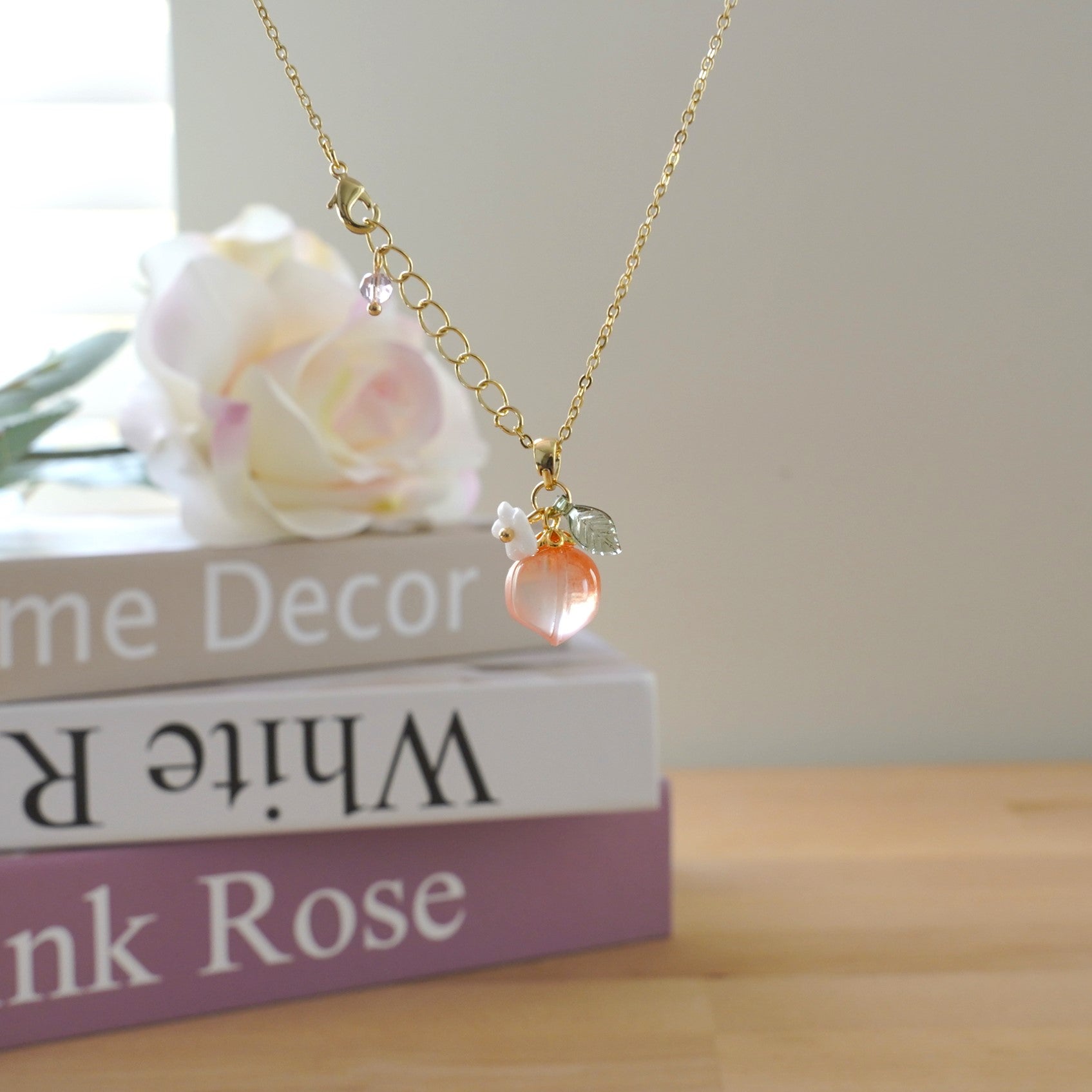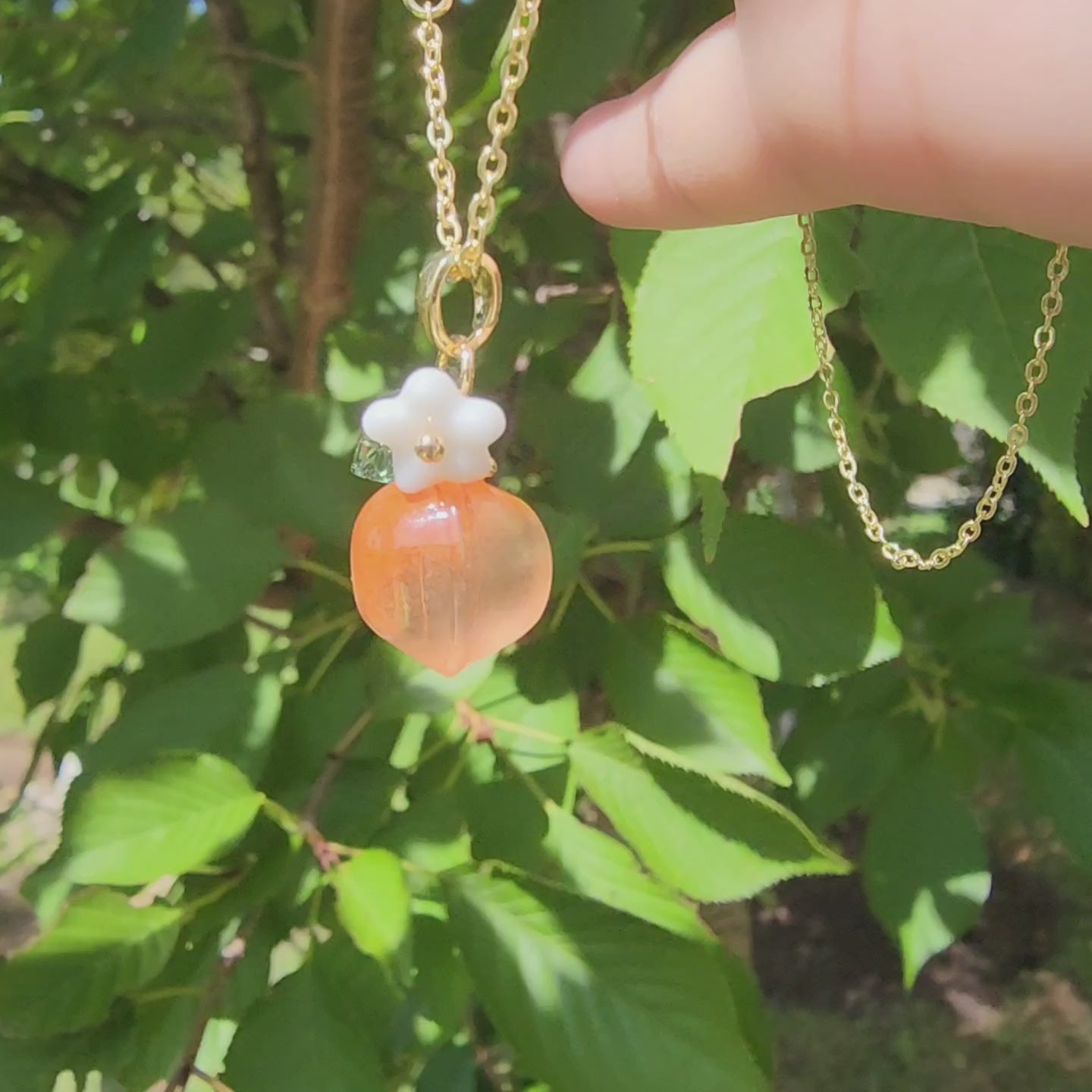 🍋Material: handmade with glass peaches, glass flowers, acrylic leaves and the 14K gold plated chain (hypoallergenic).