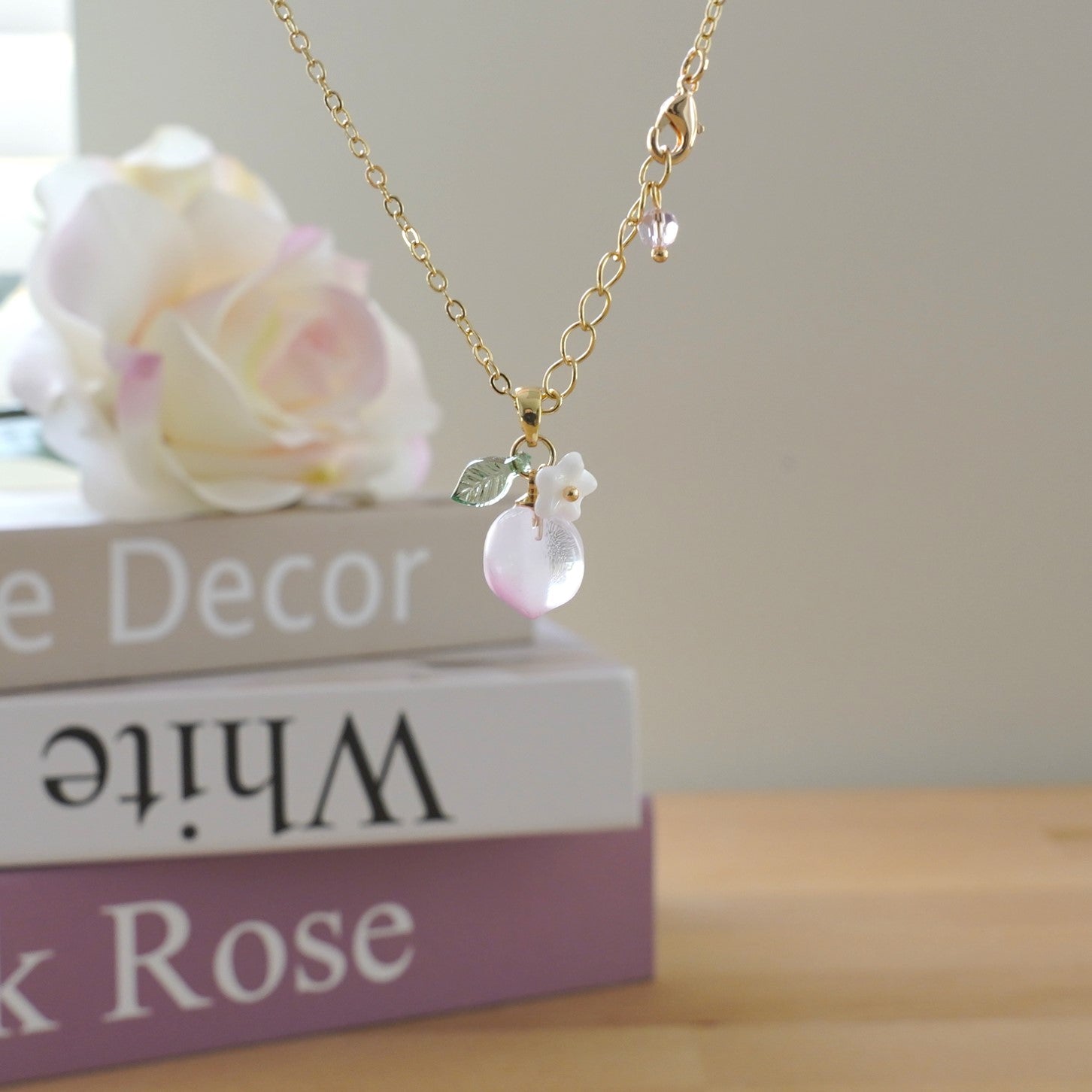🌺 Size: Can't find your perfect chain length? We offer different length options, 16-inch,18-inch, and 20-inch. The peach pendant size is about (W x L) 1.5cm x 2.3cm. It's perfect for everyday wear.