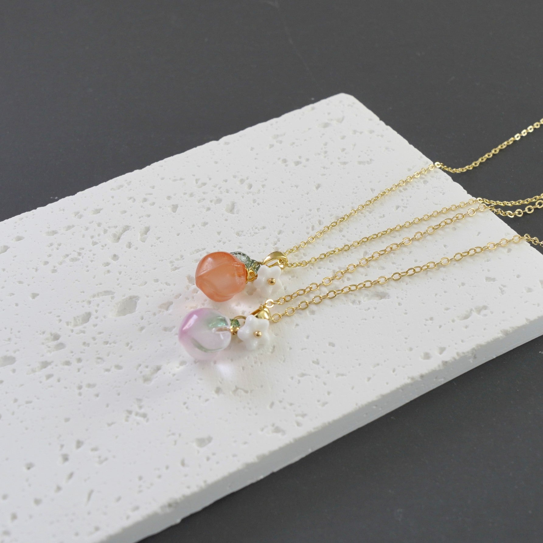 Custom Peach Necklace | Design Your Own Orange Lilac Fruit 14K Gold plated Jewelry