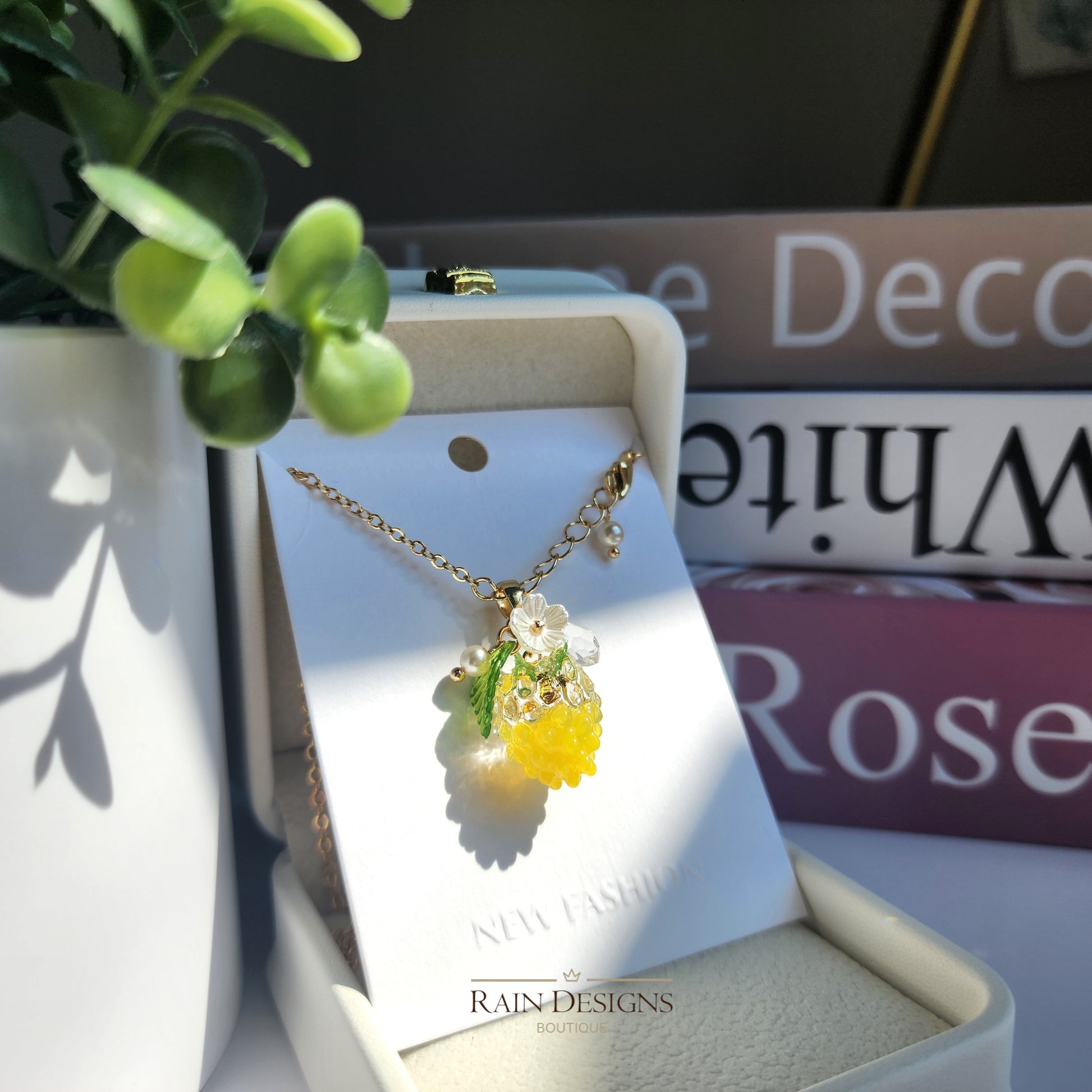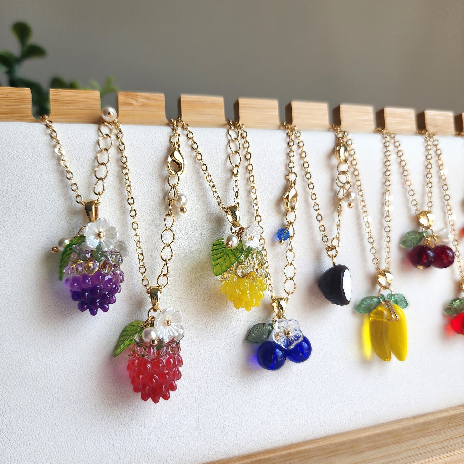 Make your own raspberry fruit necklace! It's unique. This exquisite necklace captures the essence of summer with its vibrant raspberry design. The pendant features a liquid raspberry shape adorned with a lustrous crystal bead and intricate tiny flower details. The delicate yet eye-catching design makes it a perfect accessory to add a touch of whimsy and brightness to any outfit. This necklace is versatile enough for everyday wear or special occasions. Whether you're dressing up for a garden party or simply want to infuse your look with a burst of sunshine, this necklace is a delightful choice that will surely garner compliments.