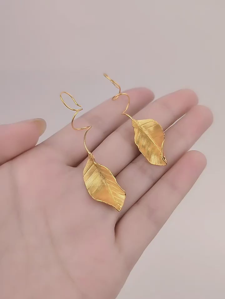 Discover the beauty of autumn with these stunning leaf earrings that perfectly mimic the look of real dry leaves. Add a touch of nature-inspired elegance to your fall wardrobe. Our gold leaf stud earrings are made with high quality 18K gold plated 925 sterling silver and solid 925 sterling silver which are good for delicate skin.