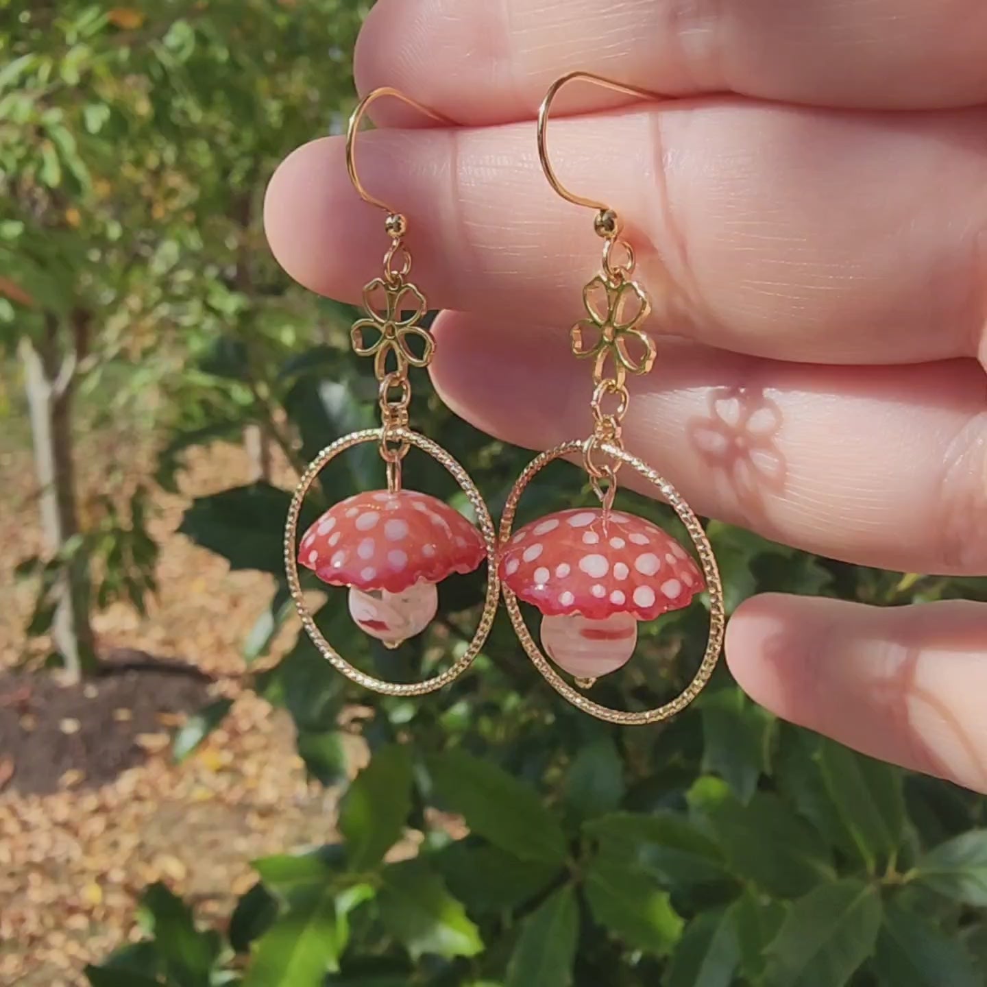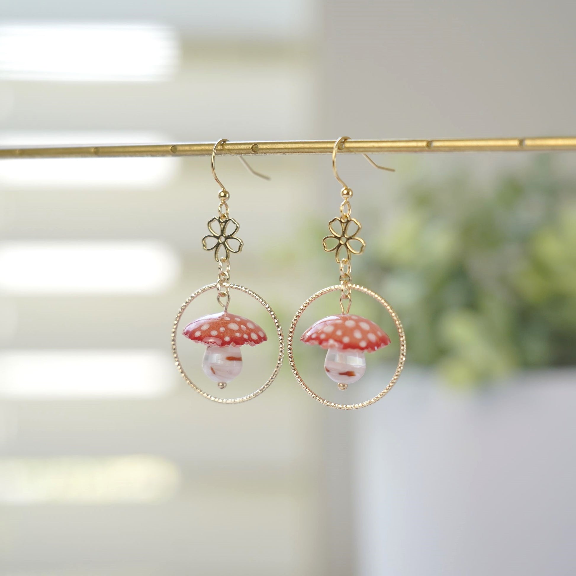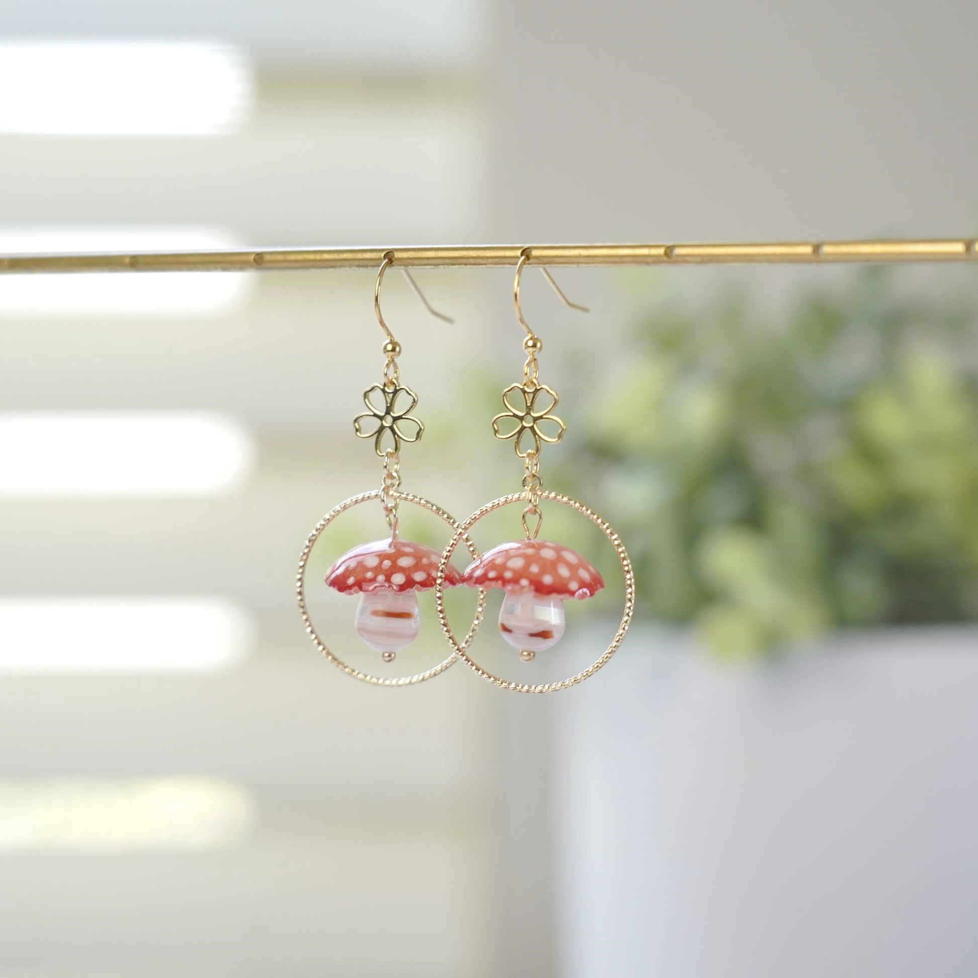 🍄Material: the mushrooms are made with resin and glass, gold flowers, golden rings, and the 14K gold(hypoallergenic) ear hooks.
