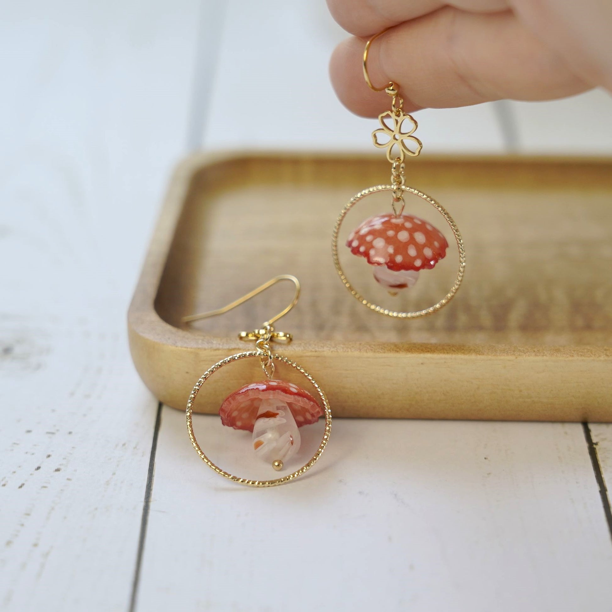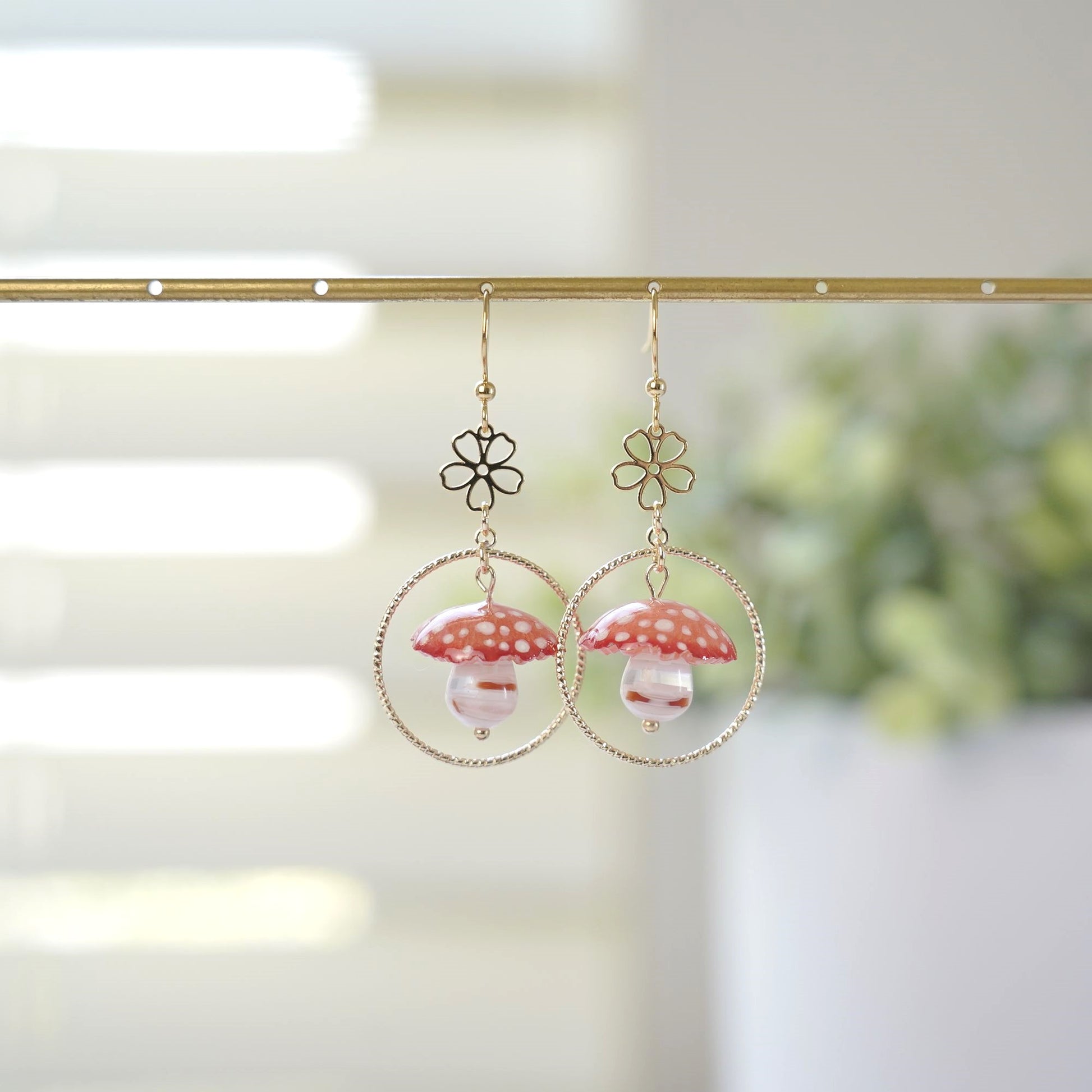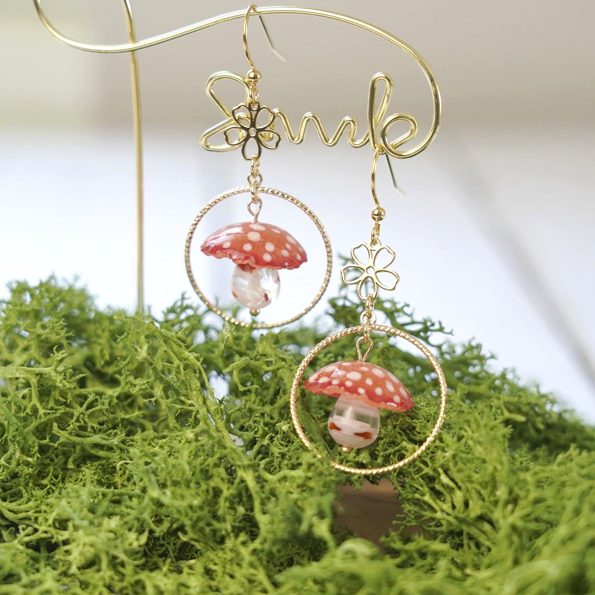 🍄Material: the mushrooms are made with resin and glass, gold flowers, golden rings, and the 14K gold(hypoallergenic) ear hooks.