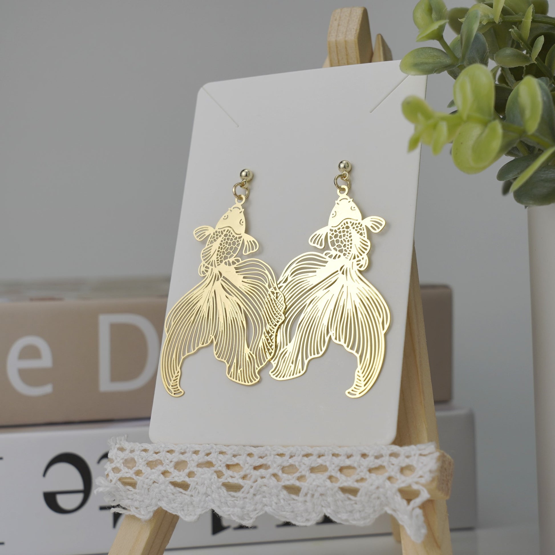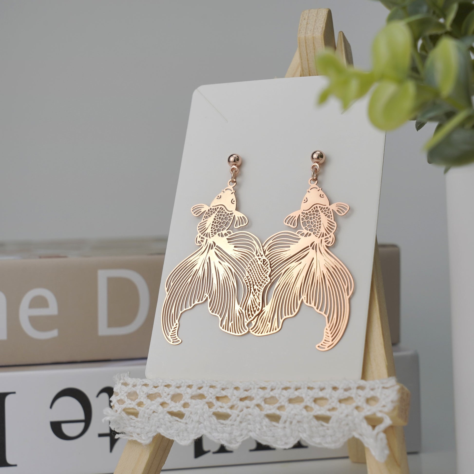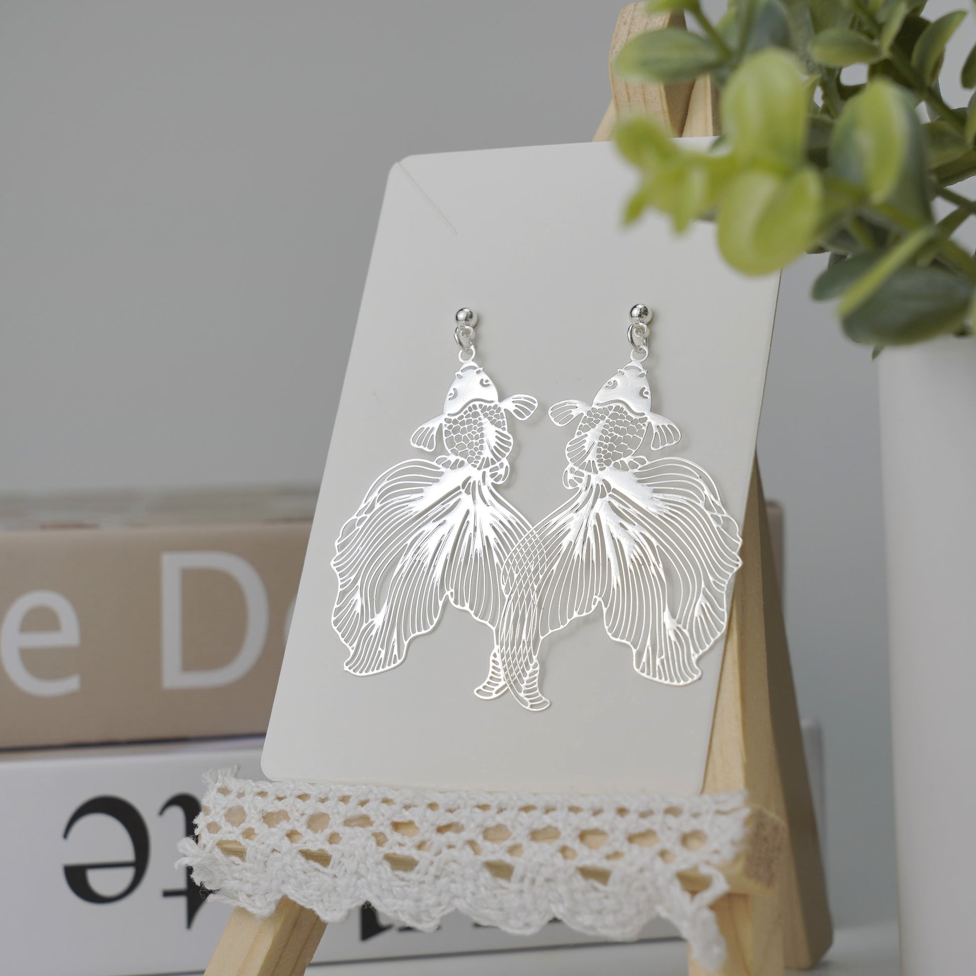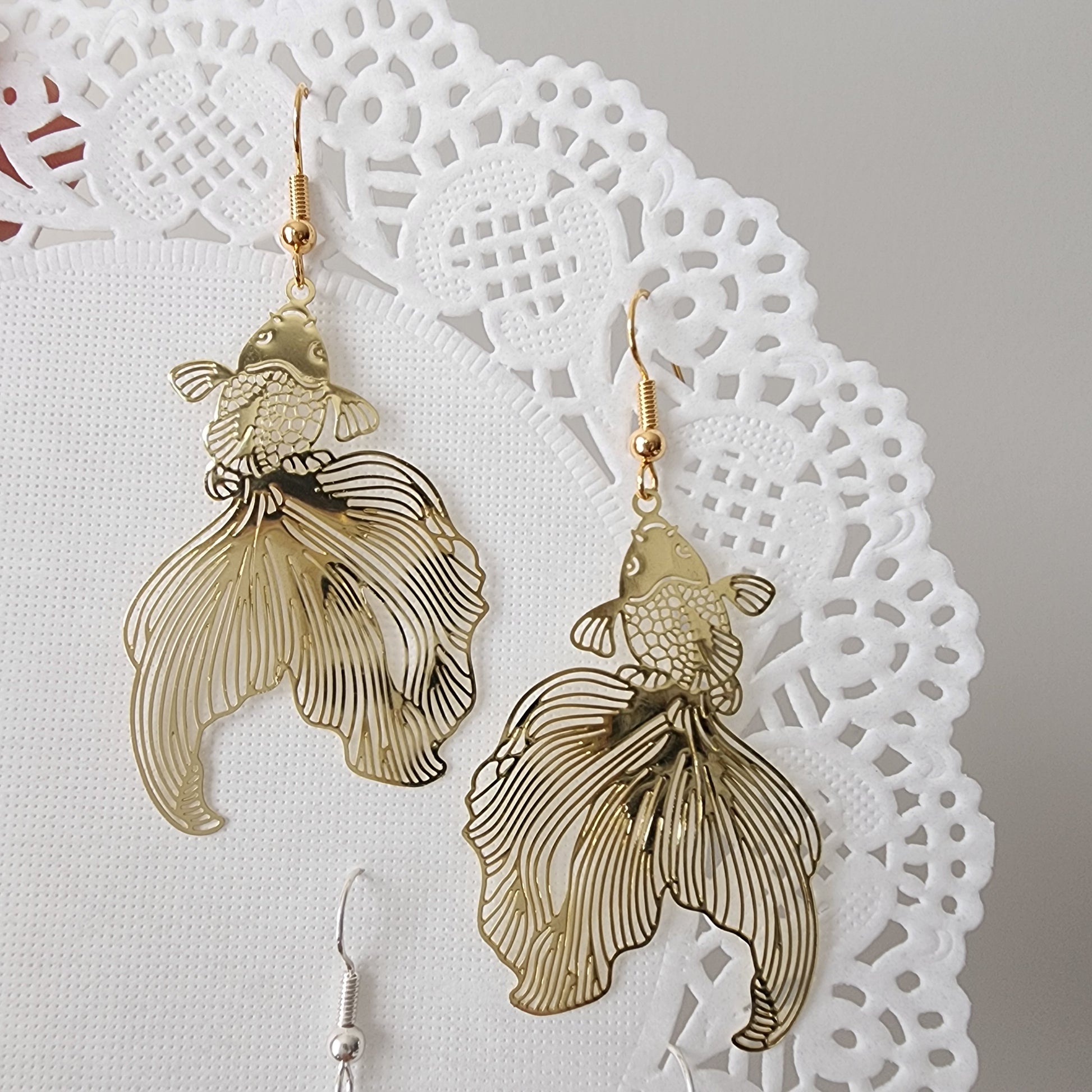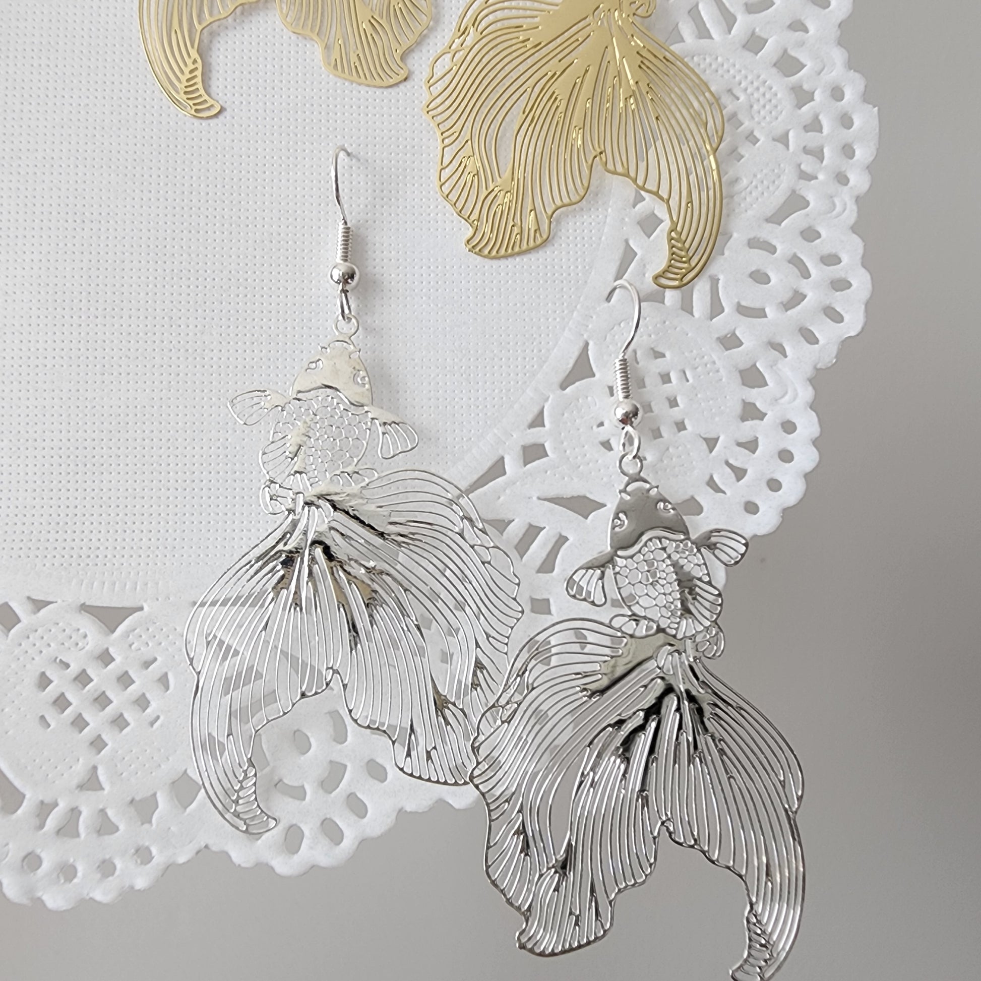 These unique goldfish earrings are a great eye-catching touch to any outfit! You can choose from 2 different goldfish colors, silver and gold. 925 sterling silver hooks come with the silver color fish. 14k gold plated hooks come with the gold color fish. Both hook materials are good for delicate ears.