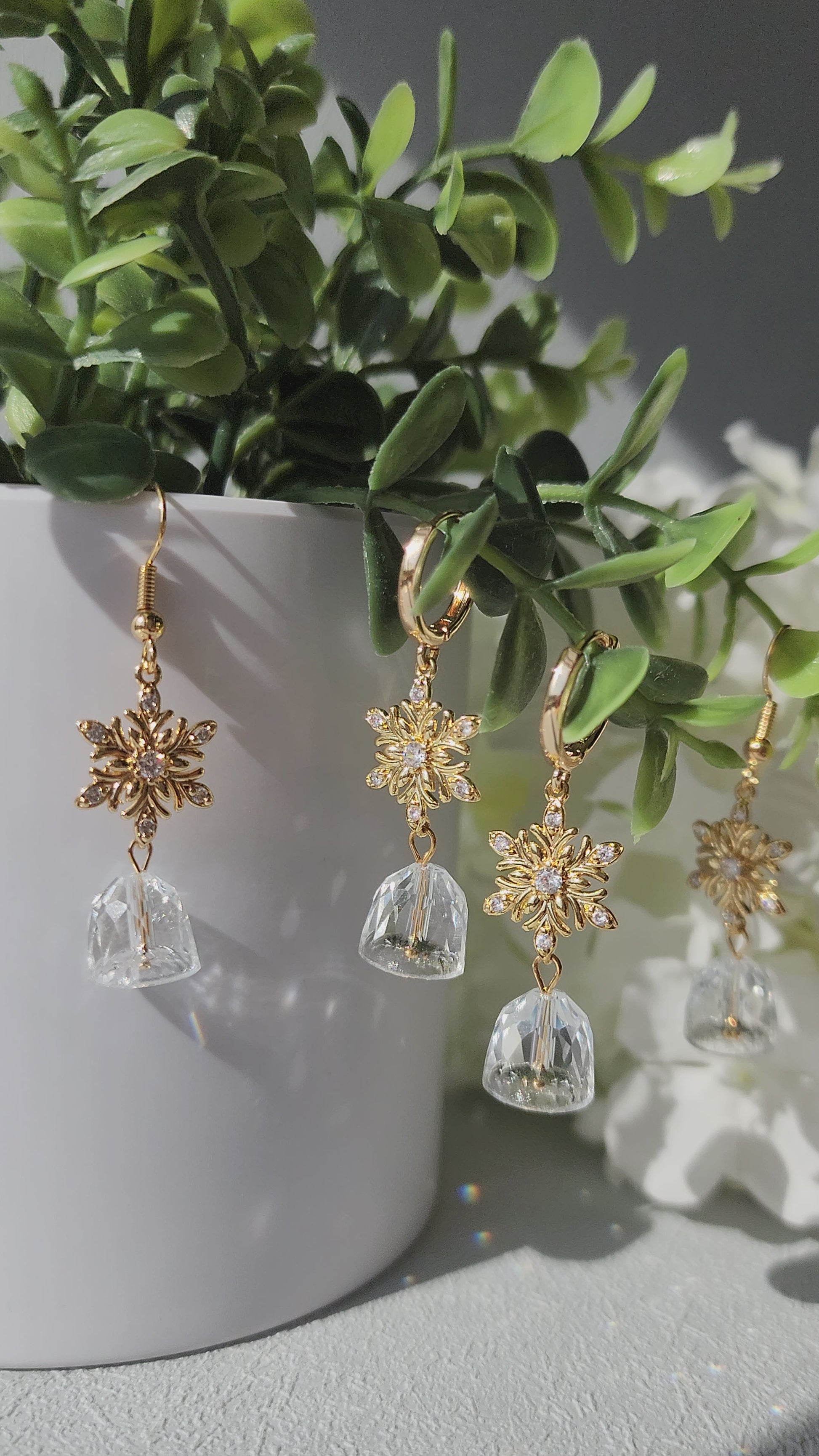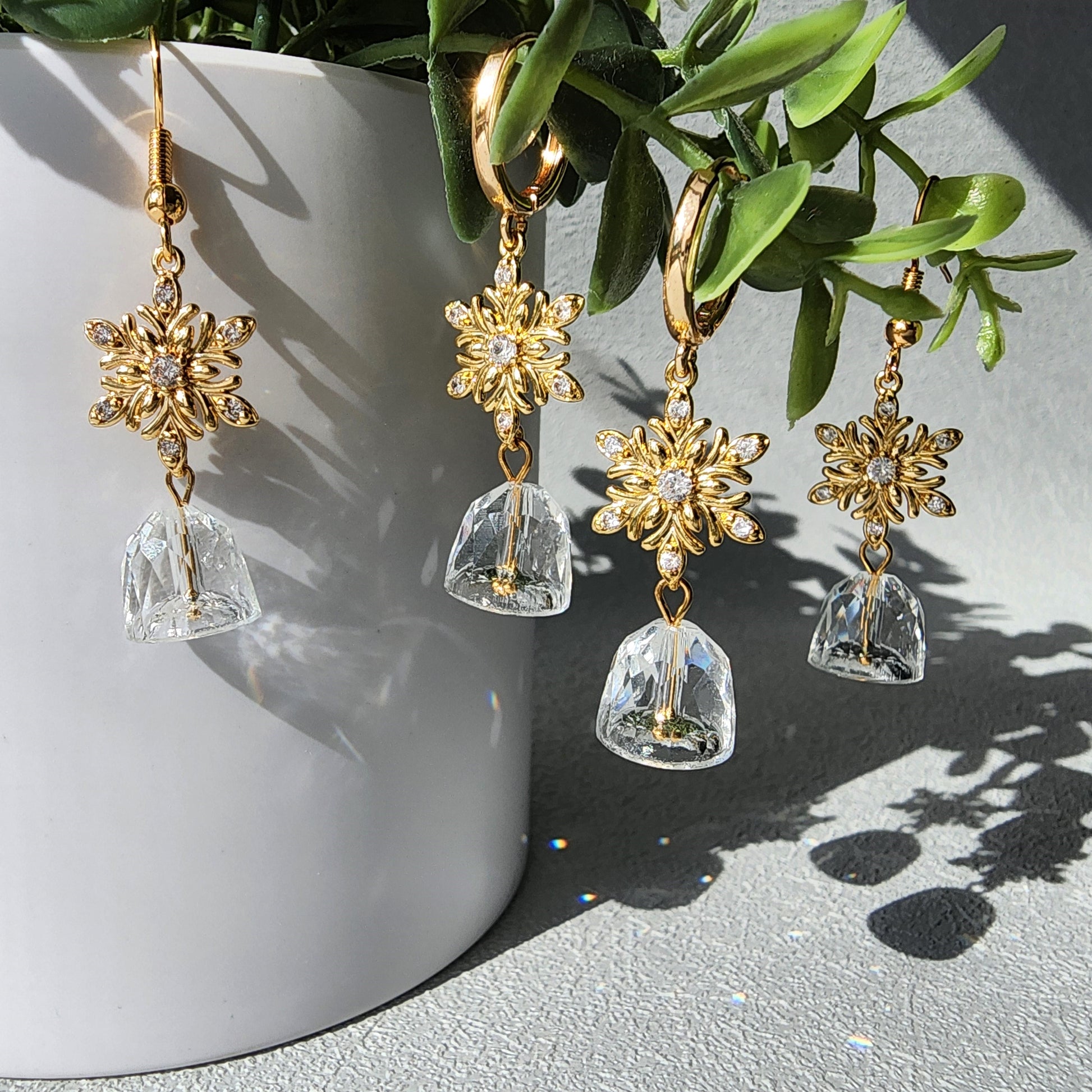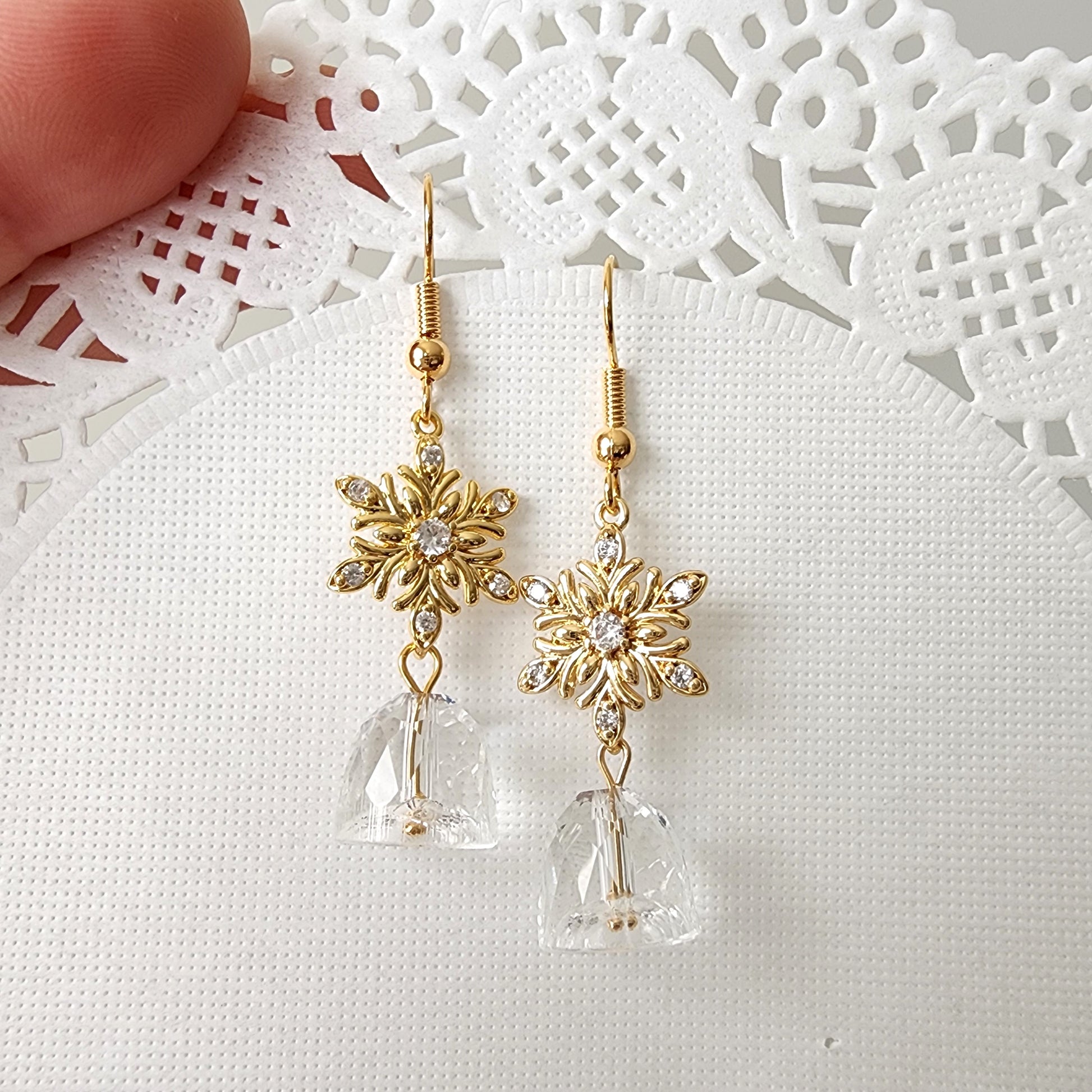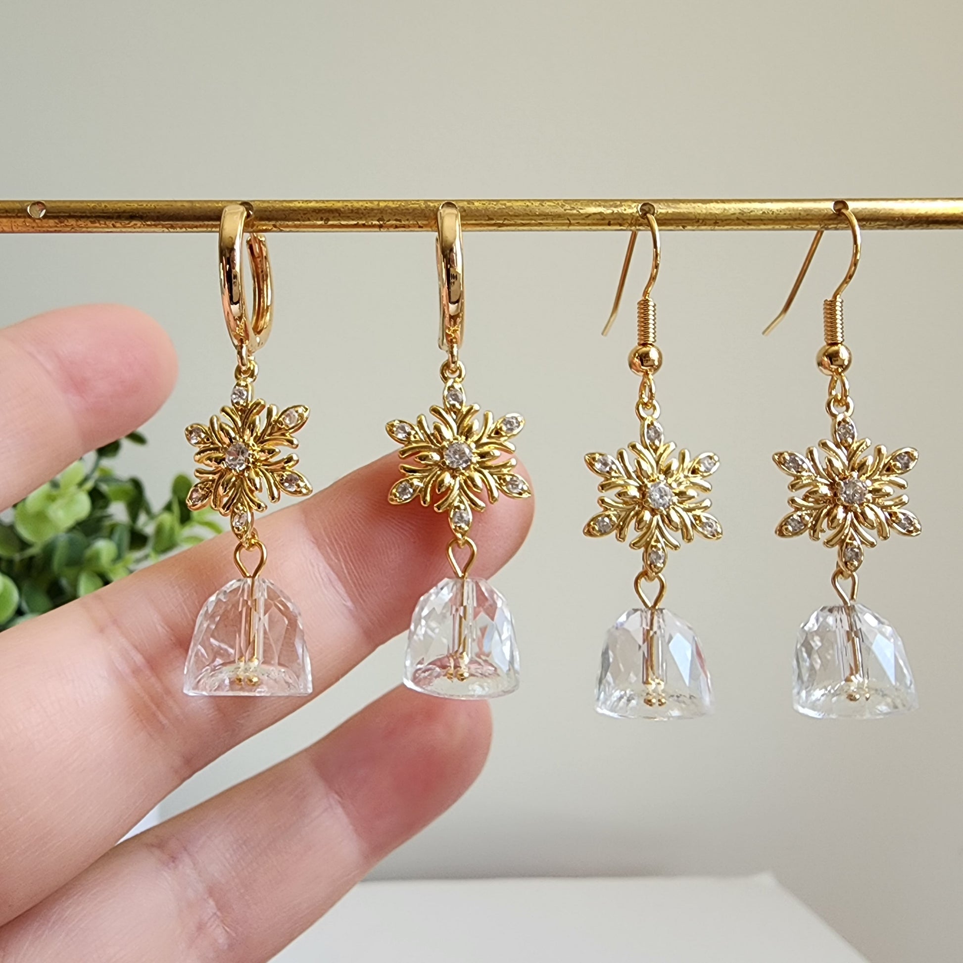 - Material: handmade with gold plated snowflake, crystal bell and 14k gold plated huggie hoop earrings which are good for delicate ears.