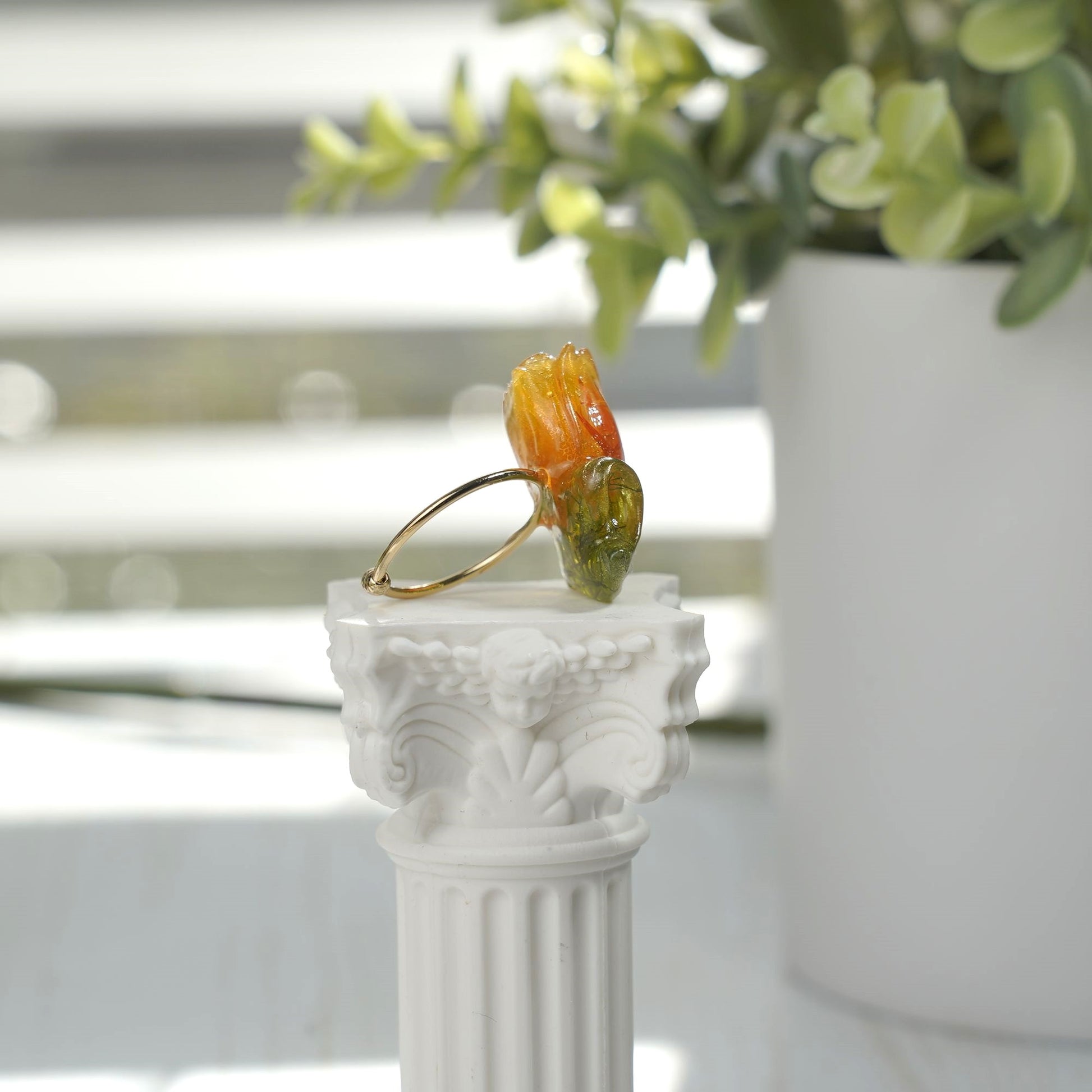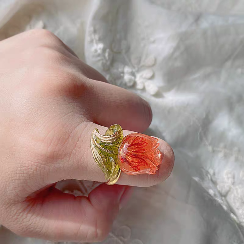 Tulip Flower Resin Open Ring