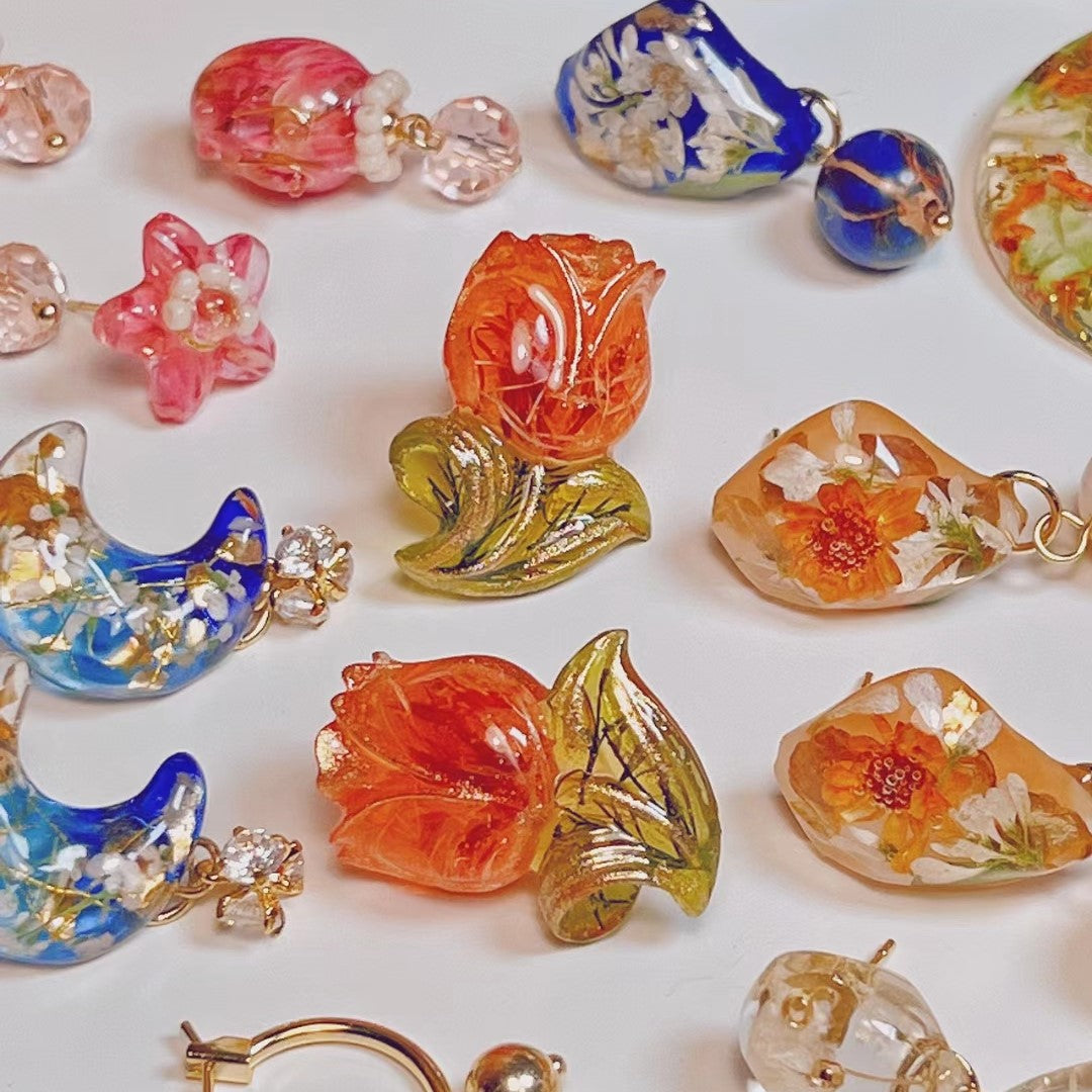 - Material: handmade with real flowers, resin and gold plated 925 silver ear needles which are hypoallergenic.